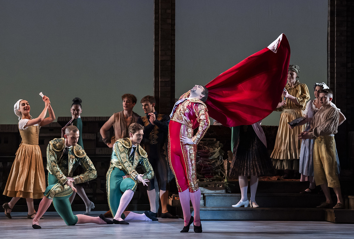 Acosta’s production emphasises the Spanish roots of the story, so we see bustling village scenes, fiery flamenco, caped matadors and live acoustic guitarists on stage among the dancers. Dream sequences provide a space for a wonderful showcase of sparkling tutus from the corp. And, of course, the spectacular solos and pas de deux full of fun, romance and energetic air-splits and high kicks.