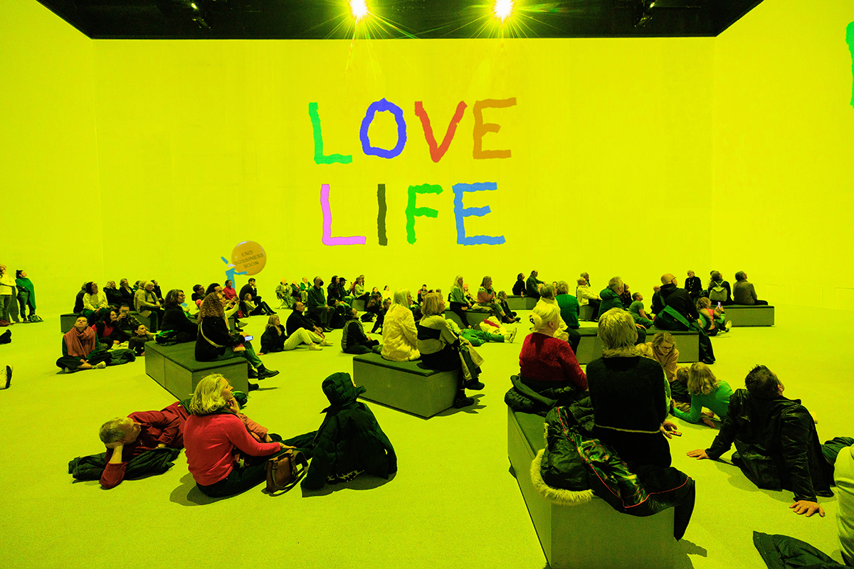 Hockney’s process is revealed in a cycle of six chapters featuring some of his most iconic images. An array of state-of-the-art projectors, which were picked out personally by Hockney as they were the only ones deemed adequately able to represent the brightness and vividness of his colours, loom overhead.