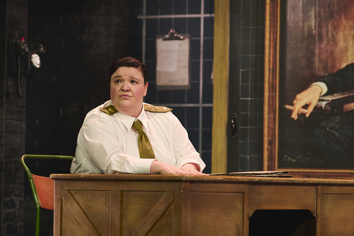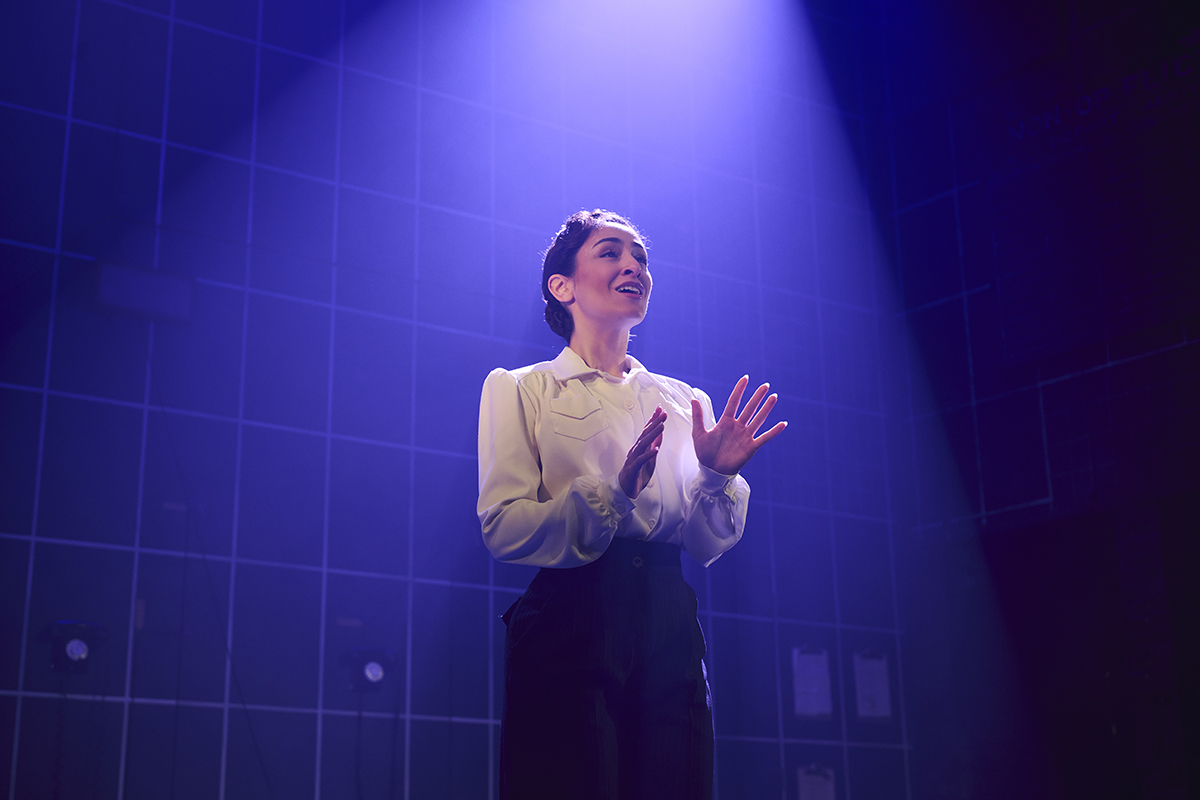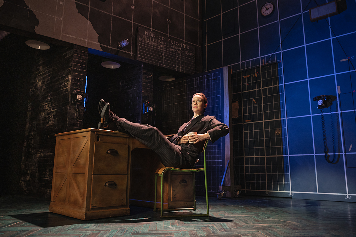 It’s war time in a secret bunker, so the set is naturally pared back. However, Ben Stones seemingly simple set design, like the show itself, has more than a few surprises, with tongue-in-cheek nods to glitzier musicals, slick reveals and effective integration of Mark Henderson’s lighting design to evoke atmosphere without blinding.
