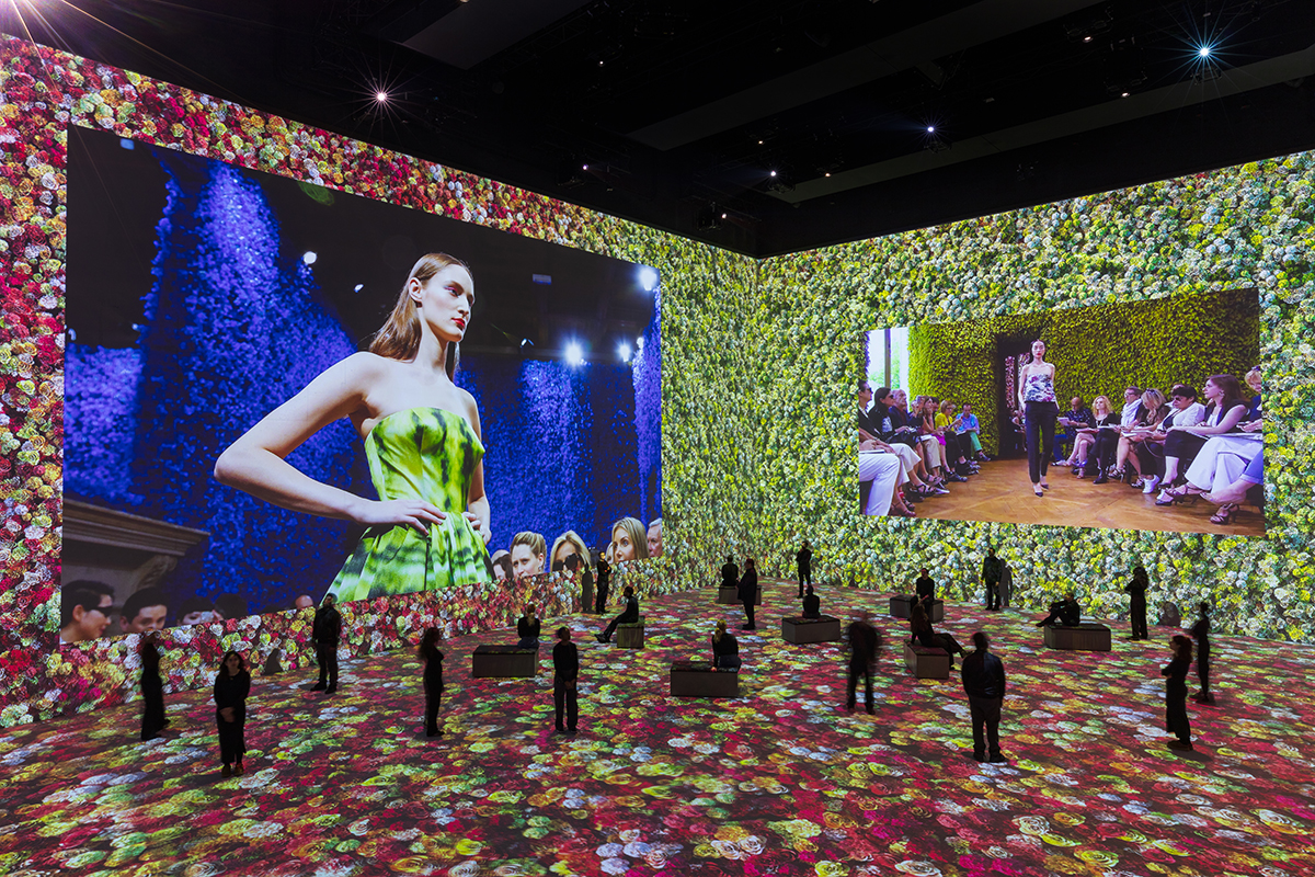 The experience brings together the industry’s leading voices with first hand interviews and a rich mix of media. Original animation, immersive sound design and a score fusing classical and pop music combine to evoke the world of fashion and the moments when iconic shows shifted the cultural landscape. No longer in the studios of a couturier, we have been whisked, by live streams, to the tunnels under the Seine, the Great Wall of China, Rio and beyond.